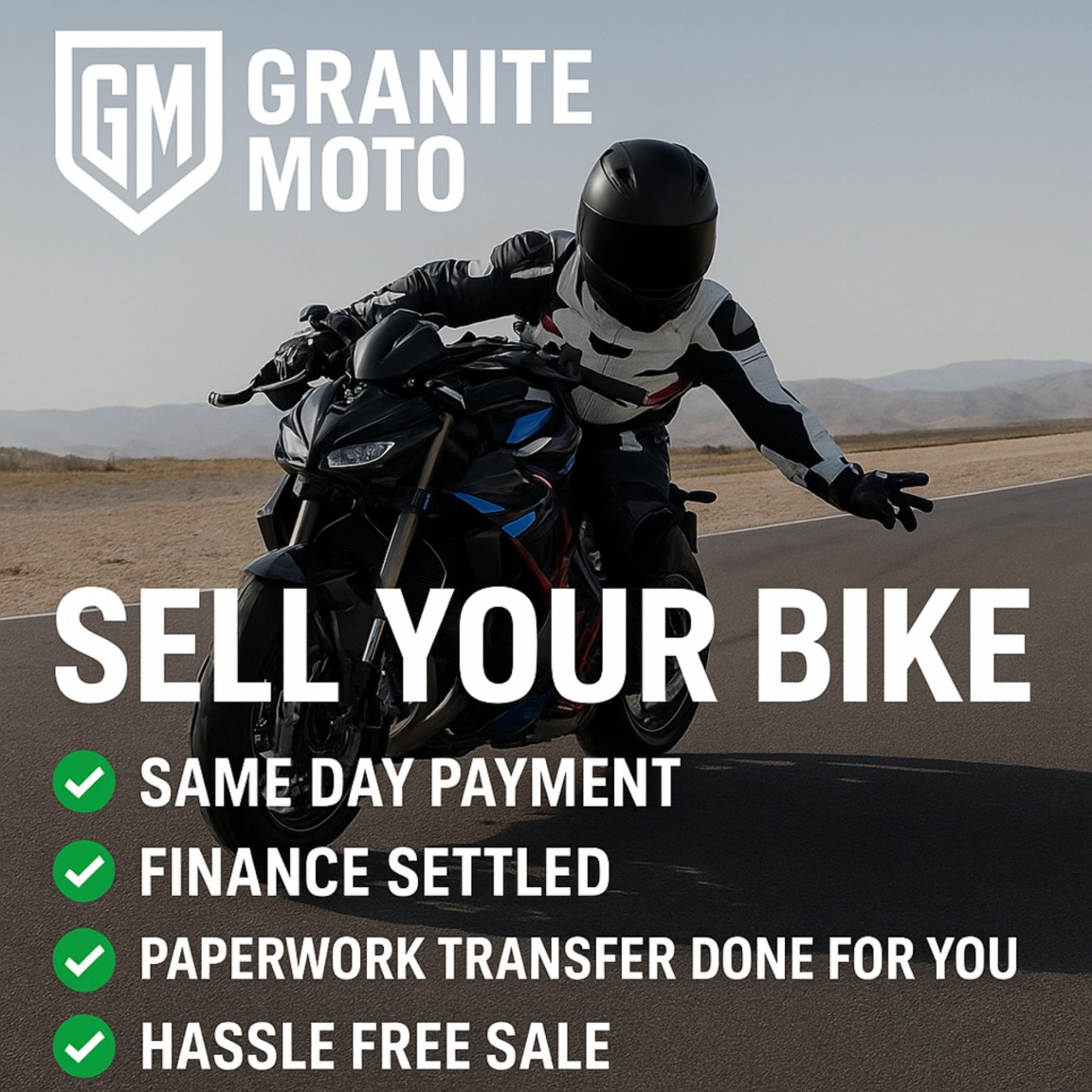 Granite Moto is registered in England and Wales. Granite Moto is authorised and regulated by the Financial Conduct Authority, under FCA number: 1024704. We act as a credit broker not a lender. We work with several carefully selected credit providers who may be able to offer you finance for your purchase. (Written Quotation available upon request). Whichever lender we introduce you to, we will typically receive commission from them (either a fixed fee or a fixed percentage of the amount you borrow). The lenders we work with could pay commission at different rates. All finance is subject to status and income. Terms and conditions apply. Applicants must be 18 year or over. We are only able to offer finance products from these providers.